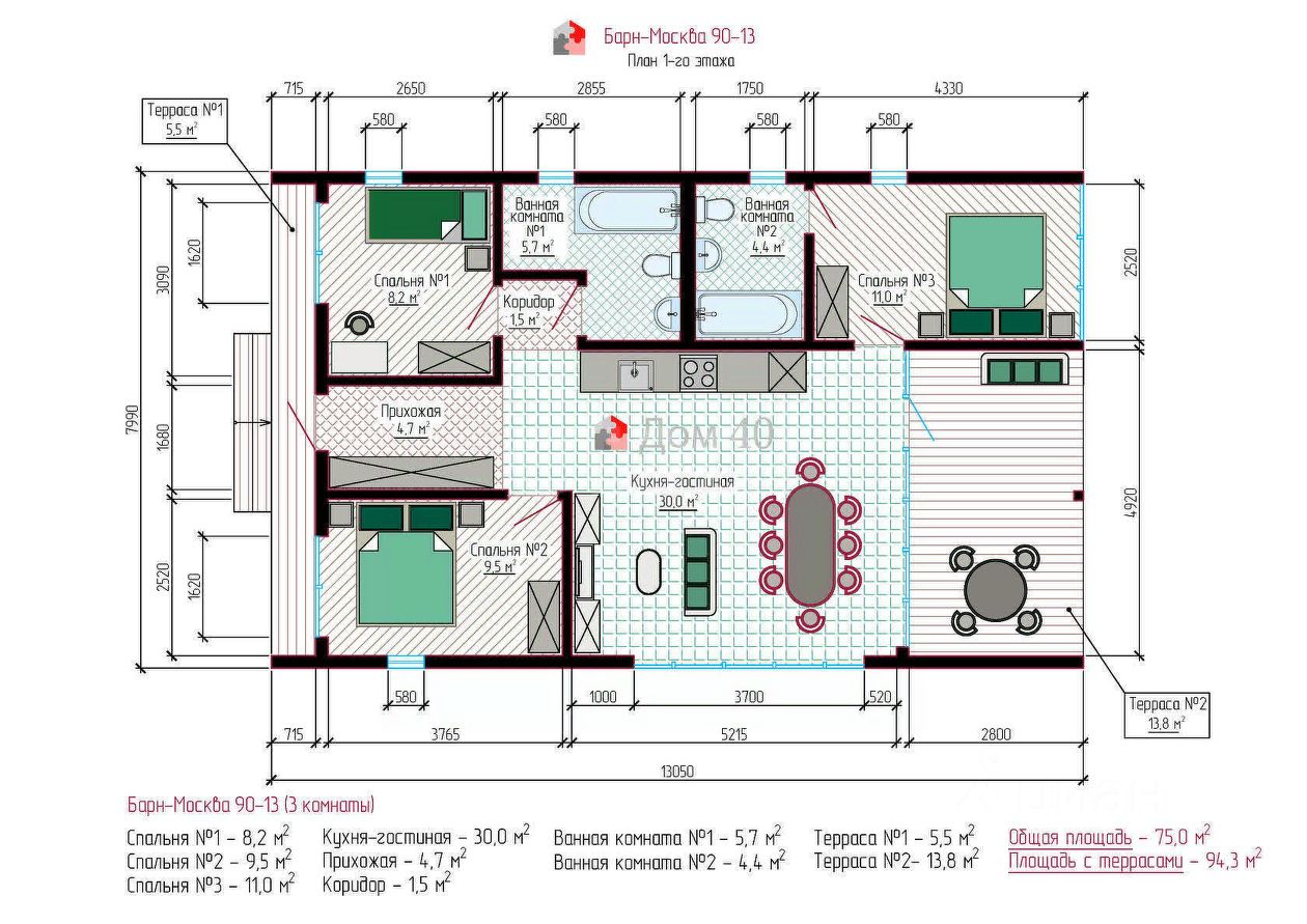 • Наибольшая площадь: 110 м²
