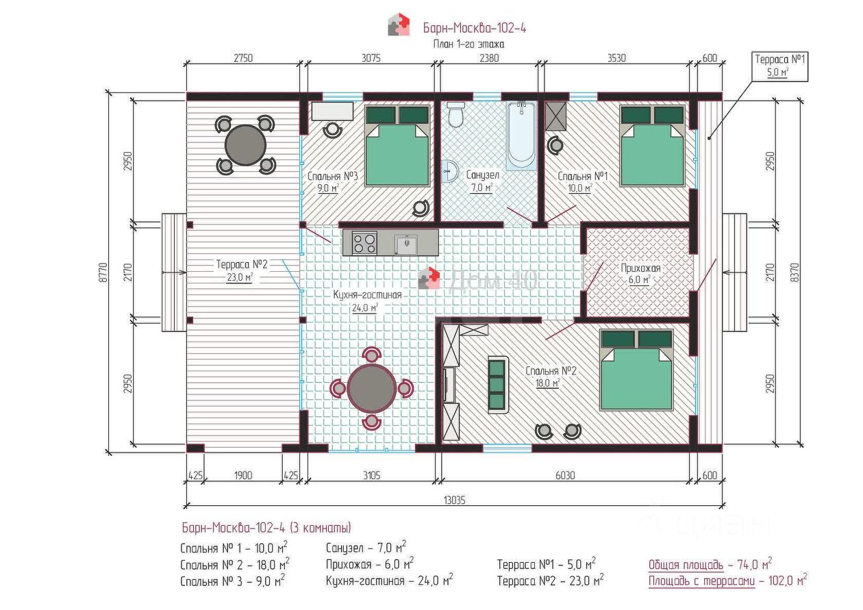 Дом 102 м² · 10 соток · 1 этаж