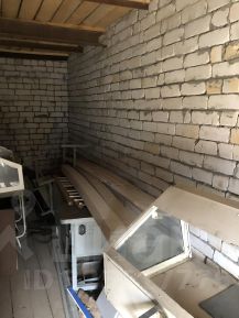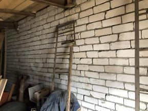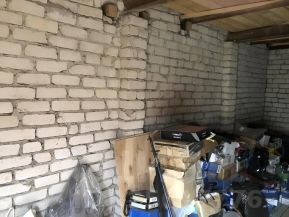 Подвалы выполнены раздельно из бетонных блоков. Подвалы сухие, так как построены на естественном уровне земли, котлованы не копались, а проезды засыпаны песком и уже на песке сделаны проезды. Входы в подвалы из каждого гаража свой. Гаражи выполнены также раздельно, между ними кирпичная стена. А комната на втором этаже над гаражами выполнена единой. И в ней два окна. Окна без стеклопекатов, просто стальные створки.