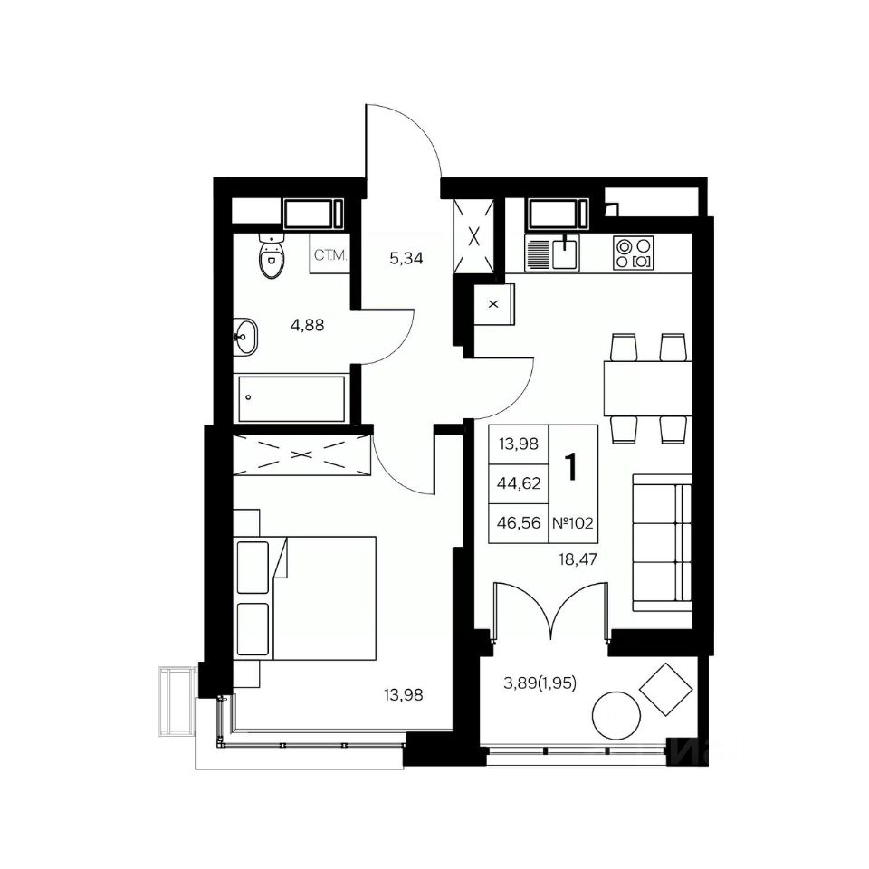 46 м² · Этаж 2 из 21