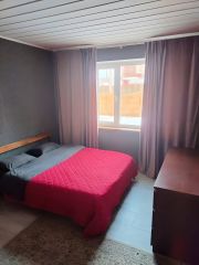 Сдается на Новый год. На первом этаже расположены гостиная ,совмещённая с зоной кухни ,прихожая и сан.узел,на 2-м этаже 2 спальни и ещё один сан.узел. На участке имеется комплекс состоящий из бани с зоной барбекю и хоз блока.Залог 25 000 ₽