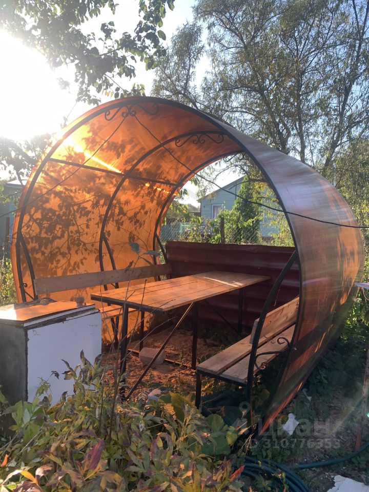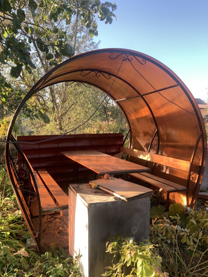 На участке оригинальная беседка для отдыха, теплица для своих овощей , много плодово-ягодных насаждений и декоративных растений.