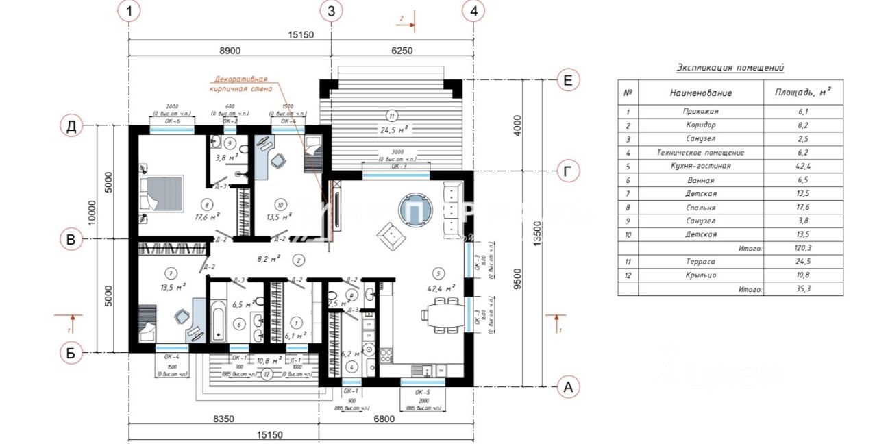 Дом общей площадью 156 кв.м. Высокие потолки. Планировка: 3 спальни 1 спальня хозяина 22 кв.м с сан.узлом и гардеробом, и 2е детские по 13,5 кв.м., гостиная-кухня 42,5 кв.м. с высотой потолков 4,2 метра, общая ванная, прихожая, постирочная, гардероб и бойлерная. . Дом построен с любовью и вниманием к деталям по энергоэффективной технологии с эксплуатируемой плоской кровлей в минималистичном дизайне, будет продаваться в состоянии White Box со всеми коммуникациями и эксклюзивной отделкой фасада (см. описание). Готовность дома к сдаче март 2025 года. Дизайн-проект в подарок с разными стилевыми решениями.