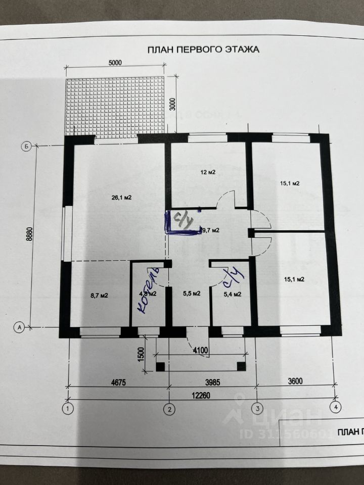 Планировка: тамбур, тех. помещение, холл, два санузла, три комнаты, просторная кухня-гостиная с возможностью пристроить веранду.