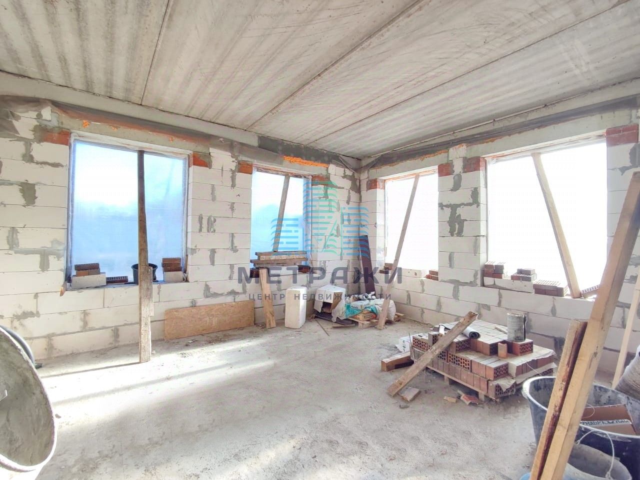 Продуманный проект и качественный конструктив! Материал стен - пеноблок, облицовка коричневым кирпичом. Фундамент - ленточный, далее залита монолитная плита 12*12 м., глубина 1,5 метра. Межэтажные перекрытия - бетонные плиты. Крыша - кровельная металлочерепица, утеплена минватой. Снаружи готова подшивка свесов софитами и смонтированы водостоки. Центральное водоснабжение! Заключен договор на подключение. Газ по границе участка. Электричество подключено.
