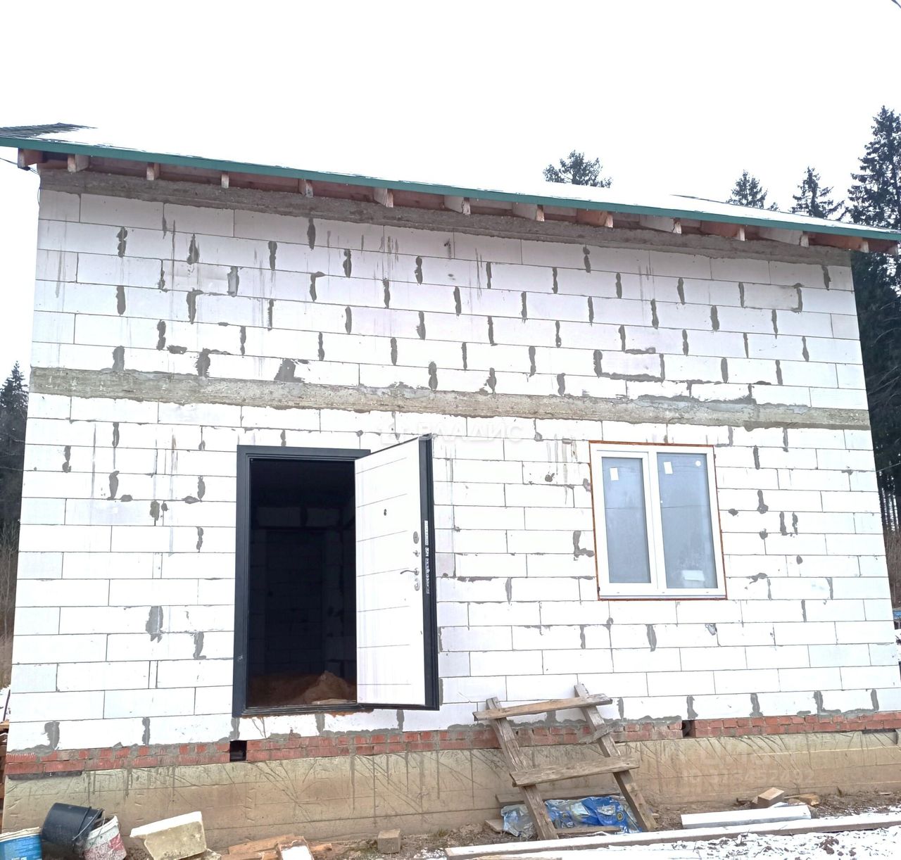 Дом построен по всем строительным нормам, на ленточном фундаменте, из пеноблока 30 см., кровля мягкая черепица, окна ПВХ, завезена земля для теплого пола.