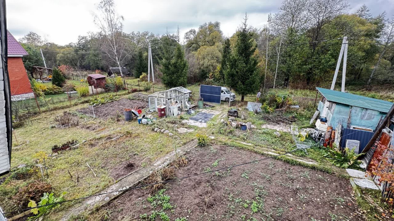 Участок правильной, прямоугольной формы площадью 5 соток, разработан. Имеется множество насаждений: картофель, чеснок, морковь, свёкла. А также плодовые деревья и кустарники: ежевика, яблони, груши.