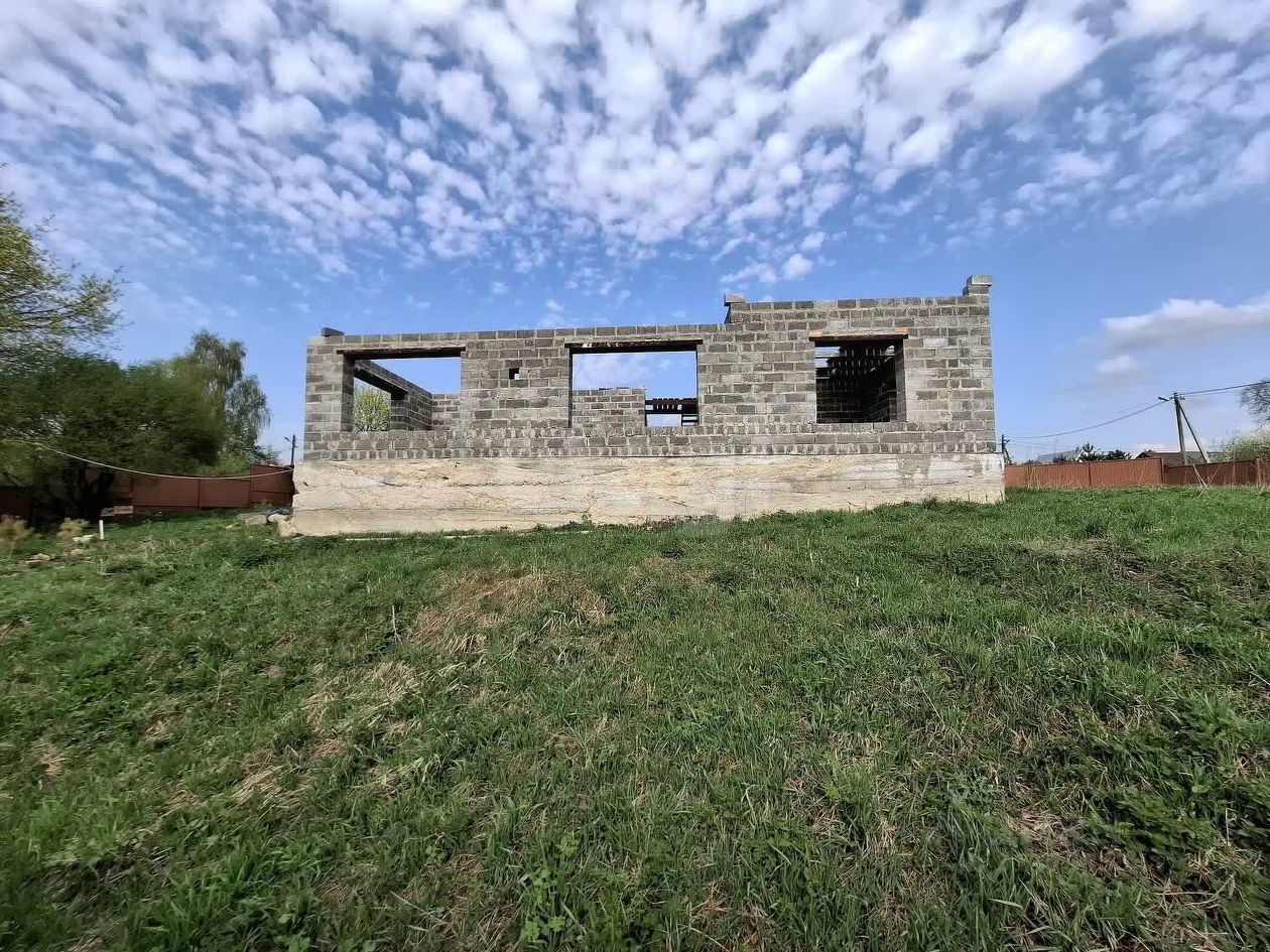 Дом расположен на участке 15 соток, обнесенном со всех сторон забором из металлопрофиля. Выкопан колодец и септик, подведено электричество, есть возможность подключения газа. В качестве времянки имеется строительный вагончик. Бонусом при продаже передаются закупленные строительные материалы: остатки блоков, гибкая черепица для крыши, окна ПВХ.