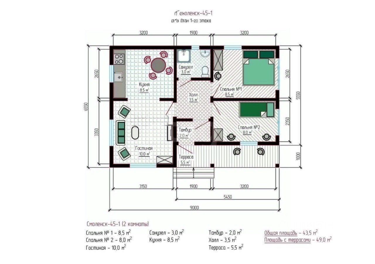 Общая площадь45 м2