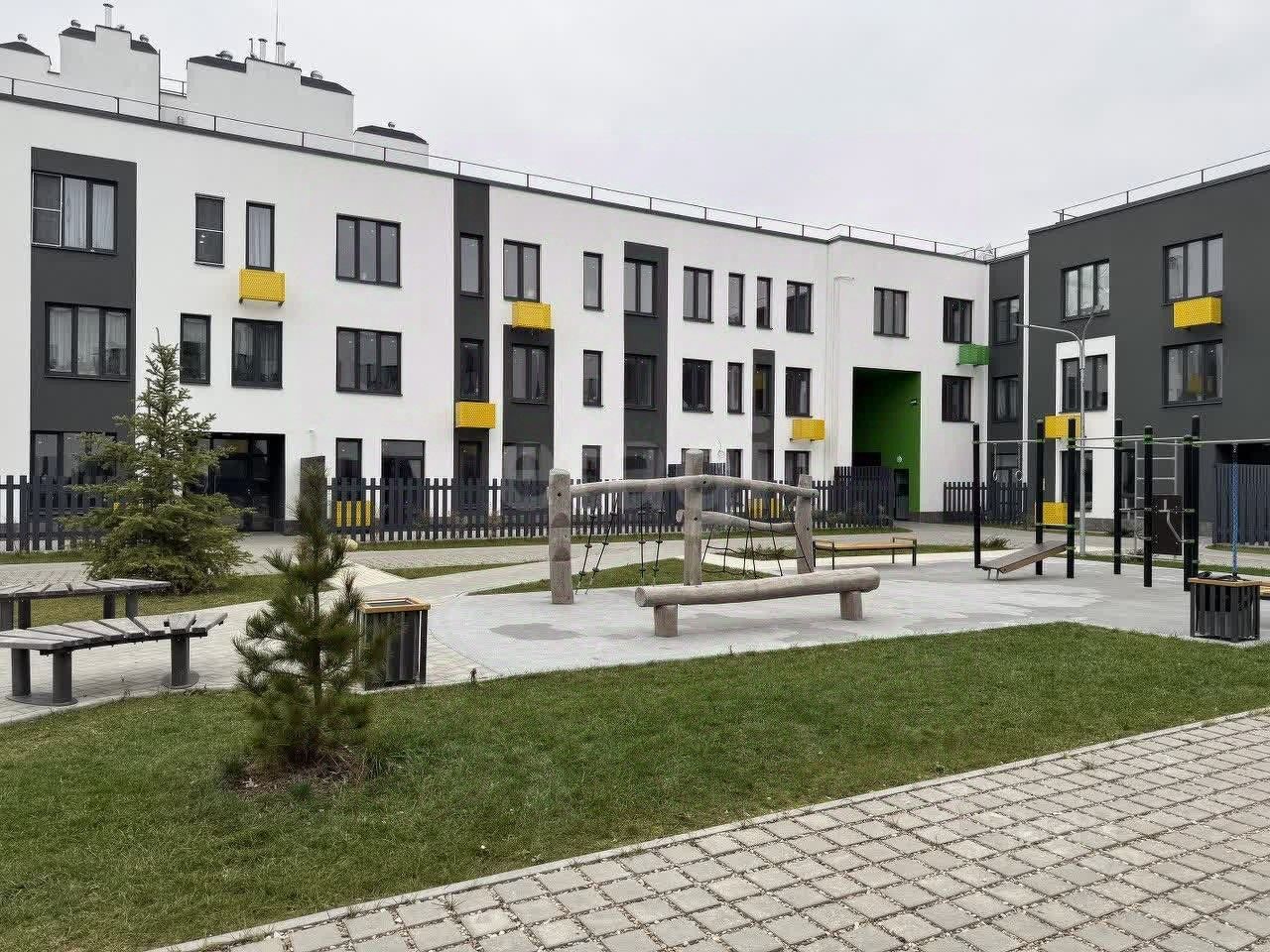 Корпуса жилого комплекса образуют закрытые зелёные дворы, в которых люди могут спокойно гулять и отдыхать, а для детей современная детская зона.Увеличенные окна в домах обеспечивают максимум естественного света.
