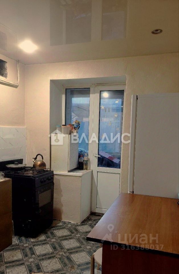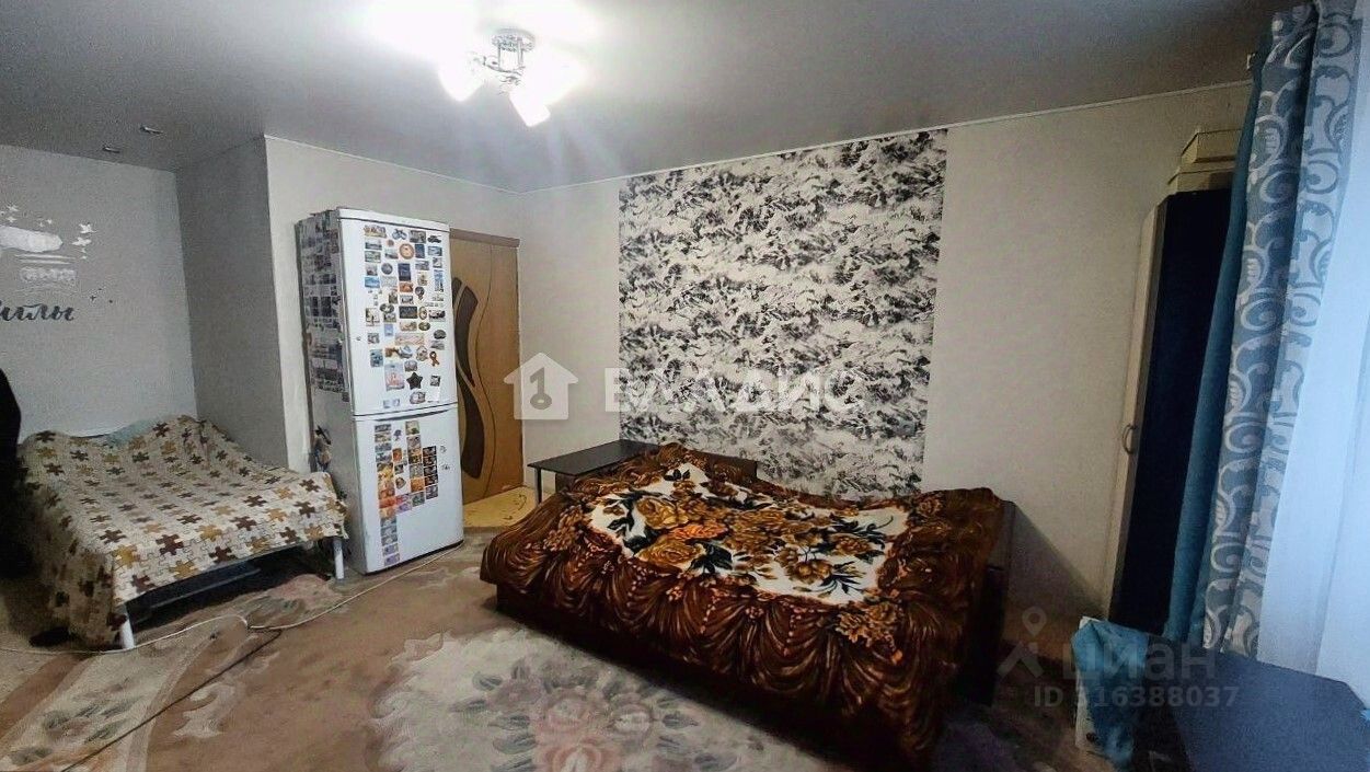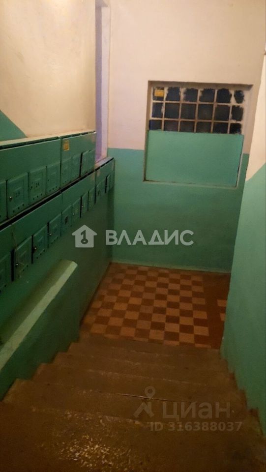 Квартира расположена на первом этаже пятиэтажного кирпичного дома. Высокий цоколь. Общая площадь составляет 34,6 квадратных метра, из которых 19,8 квадратных метров — жилая площадь, а 7,8 квадратных метров занимает кухня. Высота потолков — 2,5 метра. Совмещённый санузел. Есть лоджия. Квартира частично требует ремонта.