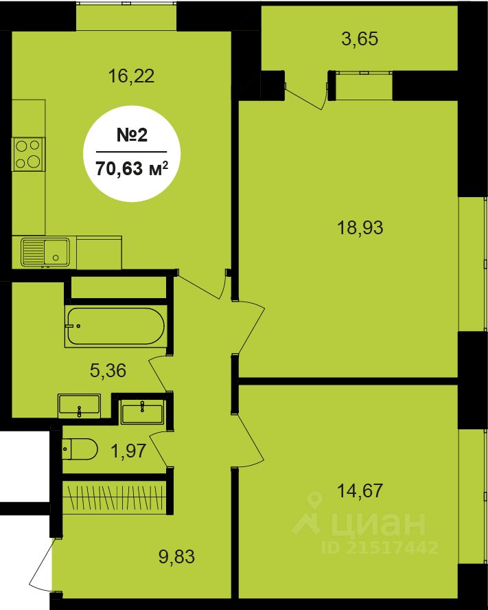 Общая площадь70,63 м2