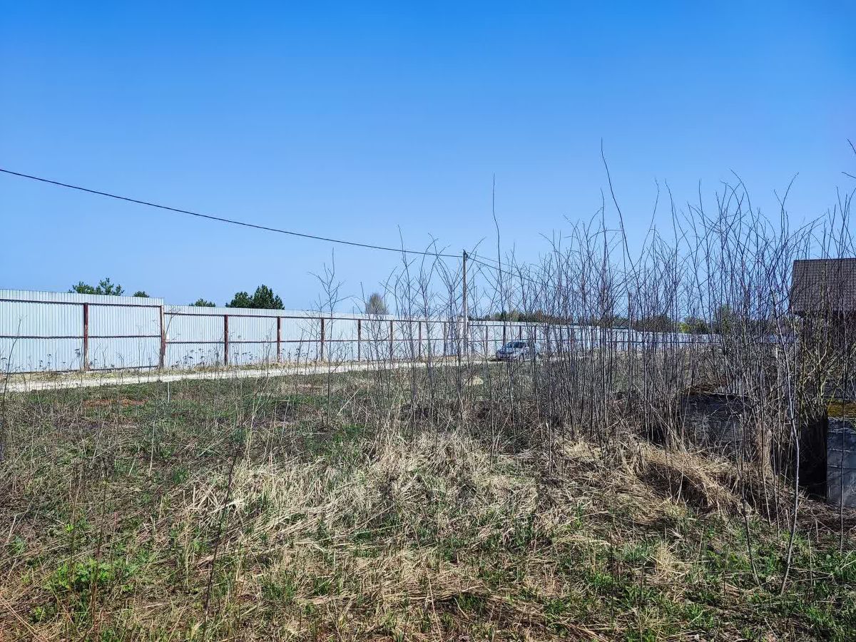 Участок ровный, почти квадратной формы, огорожен с трёх сторон, кроме фронтальной. Газ по границе, вода центральная (от центральной скважины поселка) по границе, столб электричества на границе участка.