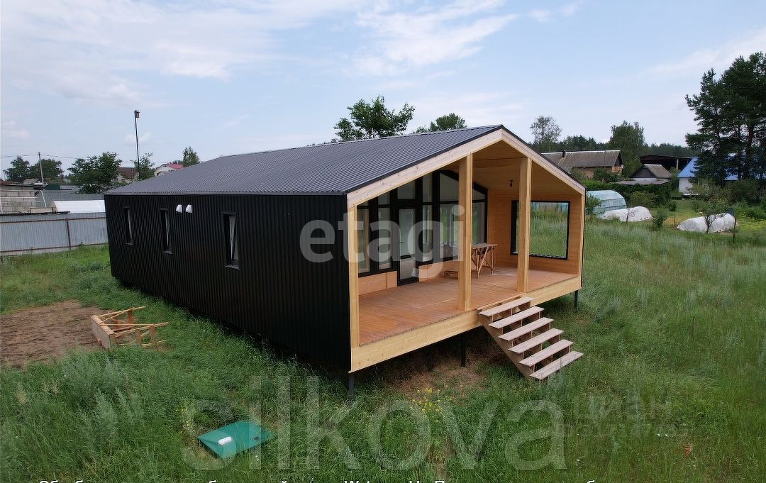 Фасад и крыша на выбор — в зависимости от серии: Кровля: металл или надёжная наплавляемая Облицовка: металлический профиль, обожжённая доска или имитация бруса