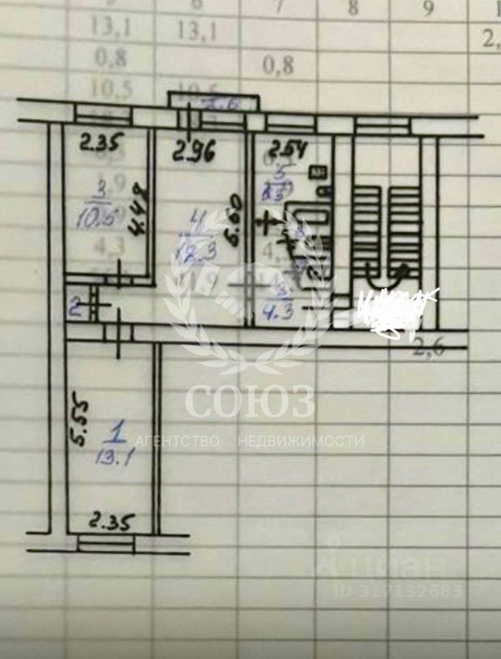 Арт. 81931849. ''Удобная трешка: ваш чистый холст в кирпичной классике!'' Продаётся квартира — пространство для воплощения ваших идей: 56,1 м² на 3 этаже уютного кирпичного дома с высотой потолков 2,6 м. Здесь вас ждёт: