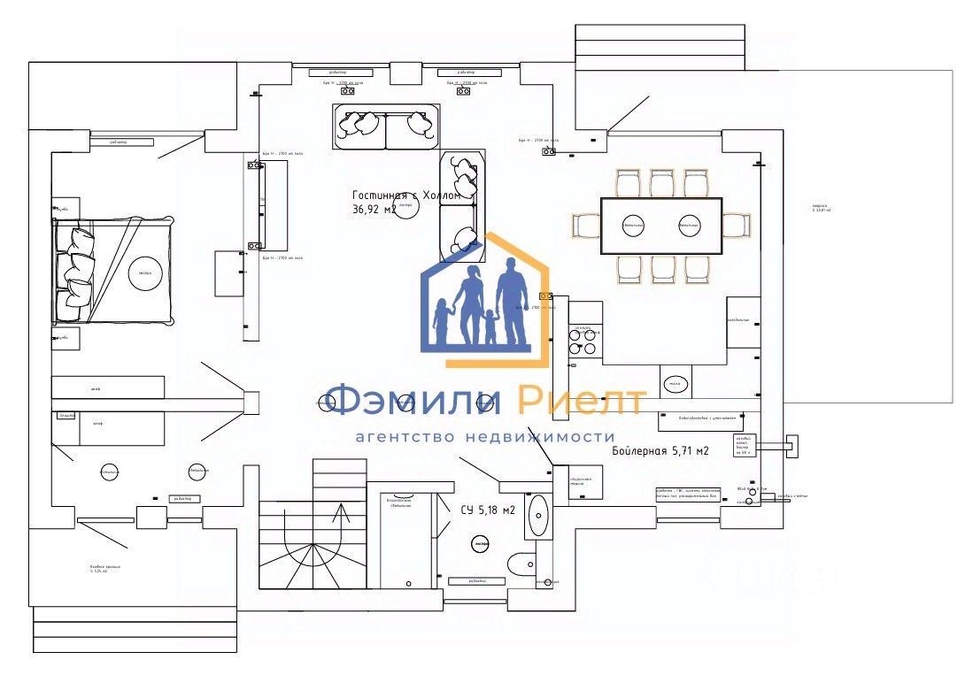 В доме имеется просторная гостиная, идеально подходящая для семейных вечеров и приема гостей.