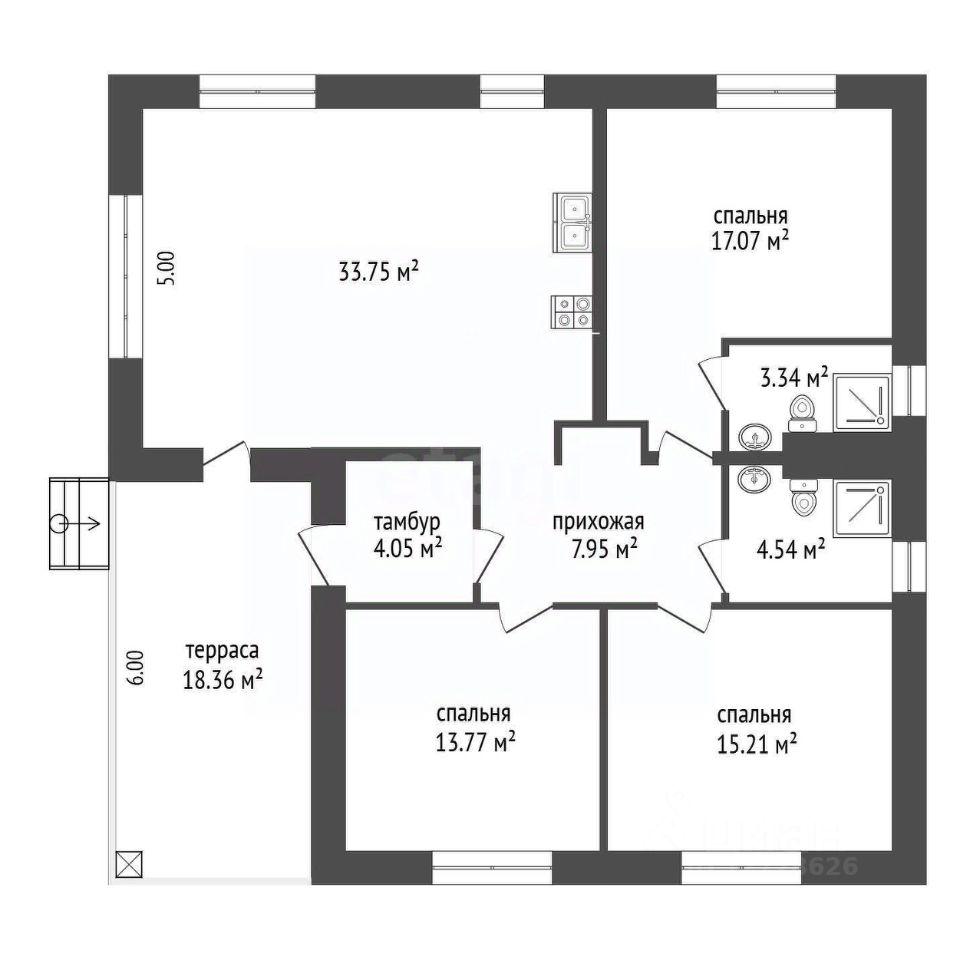В самом доме: 3 спальные комнаты, в доме также находятся 2 санузла, один из которых в Мастер-Спальне. Большой коридор и Кухня-Гостинная для того, чтобы Ваша жизнь стала еще комфортнее! Кухня-гостиная: 33.8 м² Детская: 13.8 м² Спальня 15.2 м² Мастер-Спальня: 17 м² Санузел в спальне: 3.3 м² Санузел: 4.5 м² Веранда: 18.36 м² Тамбур: 4 м² Прихожая 8 м²