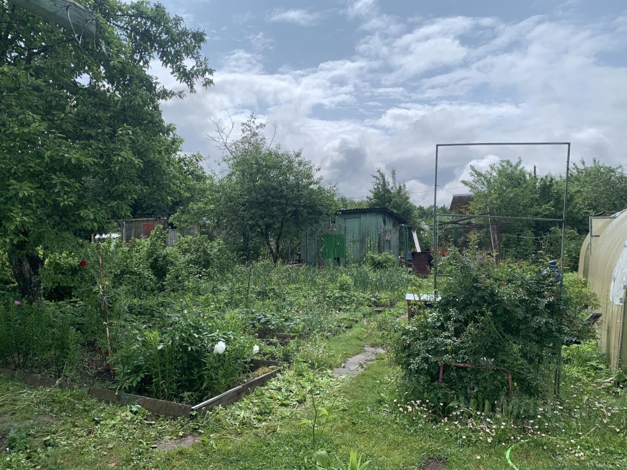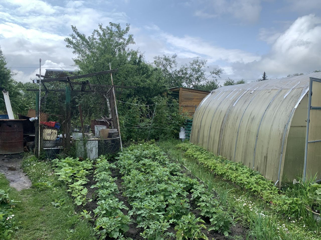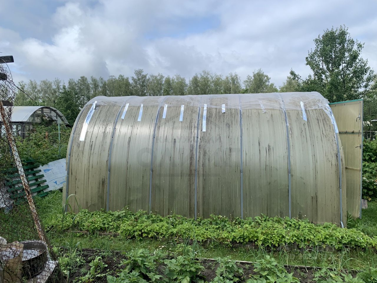 На участке имеется две теплицы. хозблок, туалет.