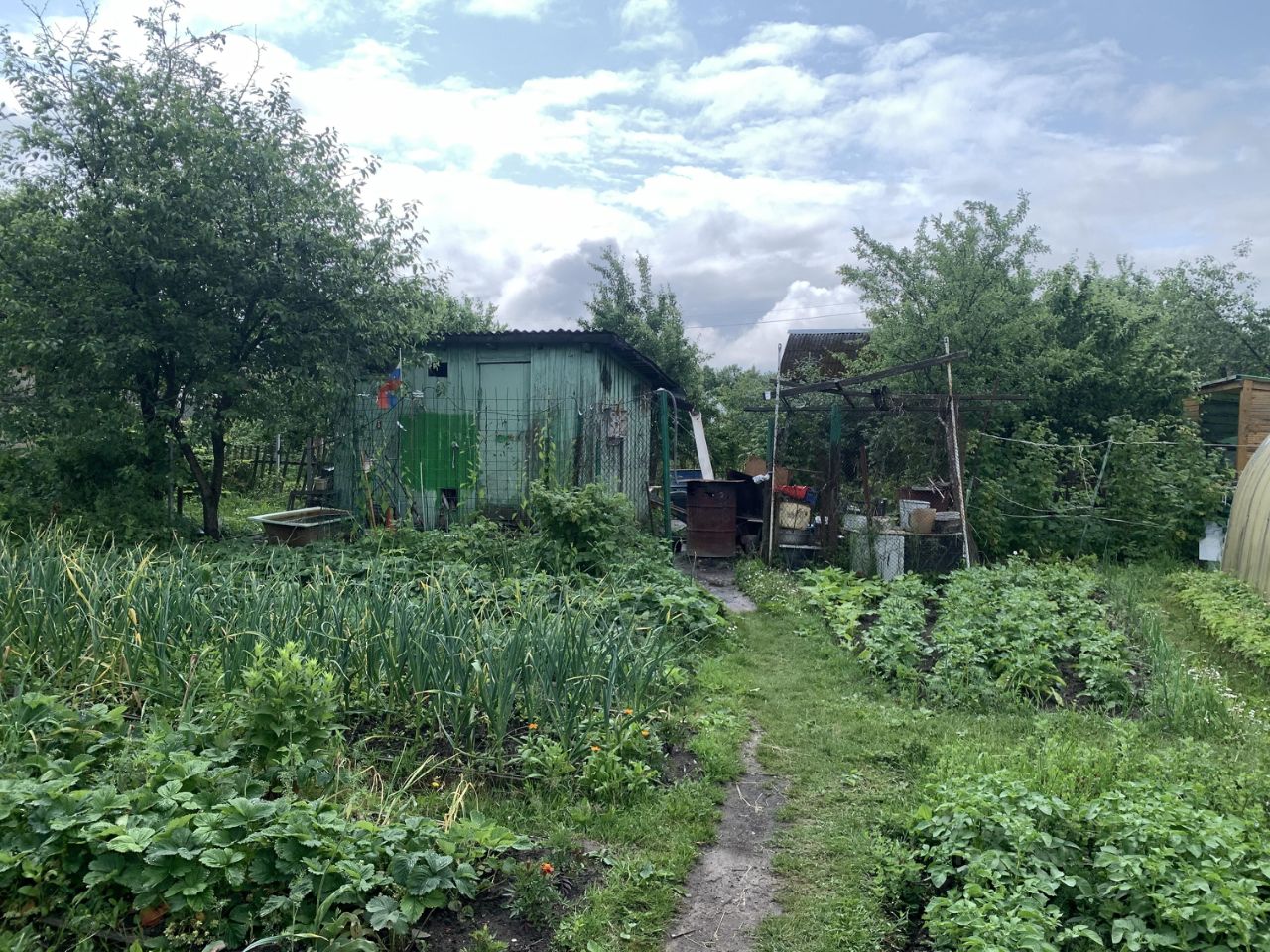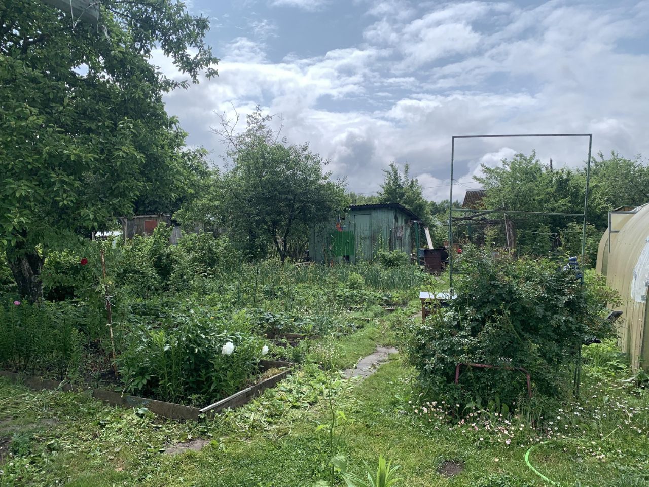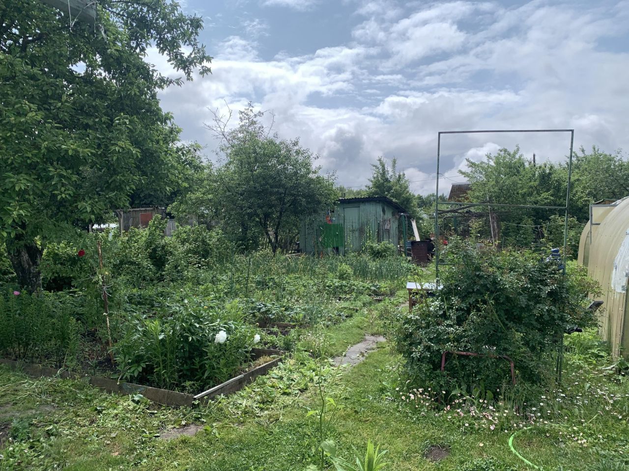 На участке имеется две теплицы. хозблок, туалет.
