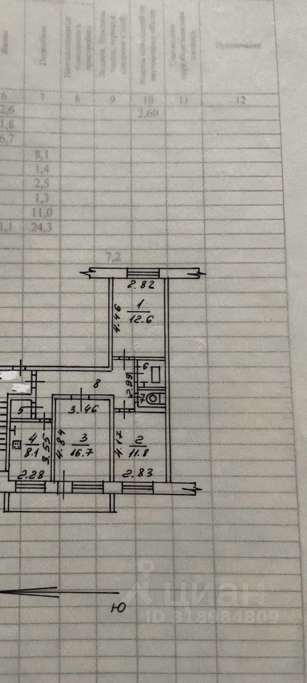 Вместительная кухня прямоугольной формы 8.1 м². Все три комнаты изолированные (16.7 м², 11.8м², 12.6м²). Просторный коридор и большая застекленная лоджия 7.2м².