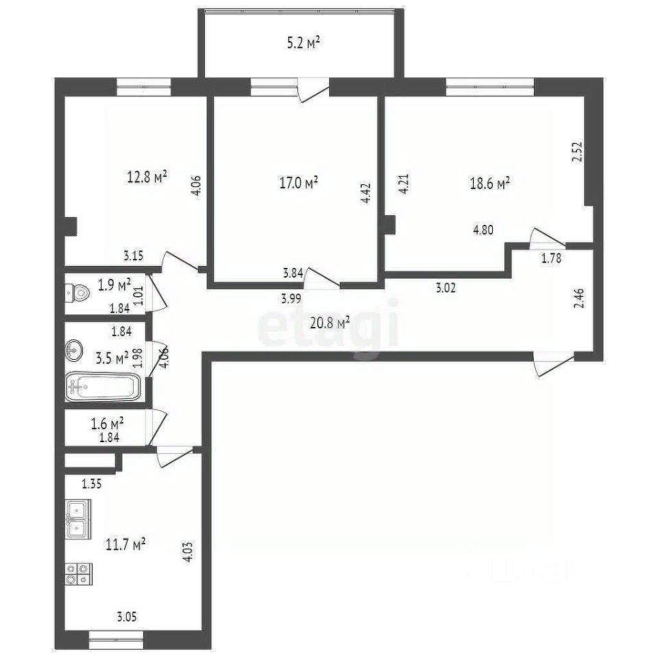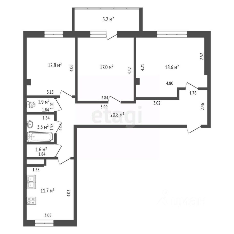 Продается классная 3-комнатная квартире в центре города. Новый СДАННЫЙ дом. Общая площадь квартира 85,63кв.м. Жилая 46,88 кв.м. Комнаты 18,25, 16,59, 12,03 кв.м. Комнаты вс изолированные. Кухня 11.14 кв.м. Санузел раздельный. Кладовка. Балкон. Квартира в черновой отделке. Электричество заведено в квартиру. В доме своя котельня, на радиаторах установлены регуляторы температуры, счетчики тепла установлены в подсобном помещении на этаже. В районе развитая инфраструктура: все необходимое есть в шаговой доступности. Почему нужно работать с Федеральной компанией ''Этажи''?