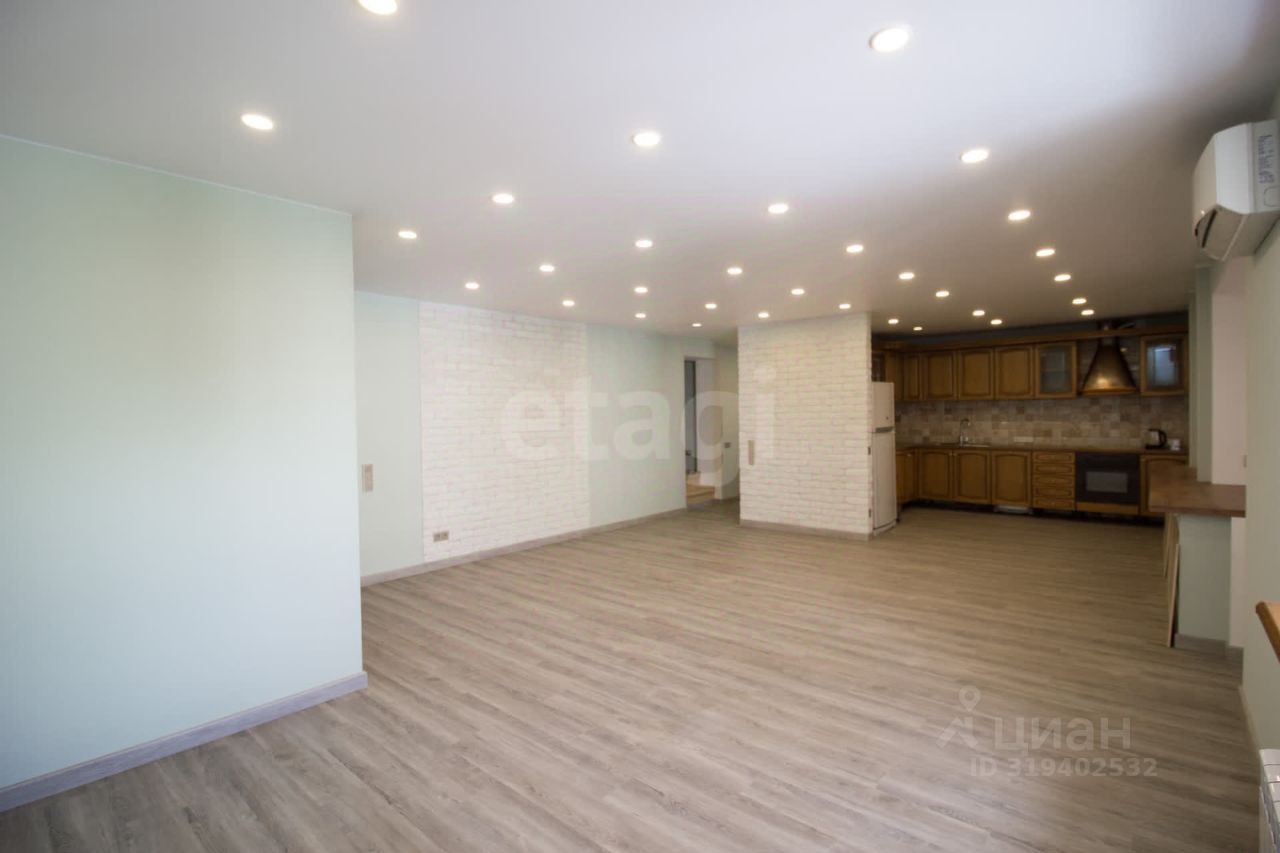 Пространство организовано рационально: на первом уровне находится кухня-гостиная 42,9 м², спальня 10,5 м², которую можно использовать как кабинет или библиотеку, и санузел с душевой. Второй уровень включает три спальни (12,4 м², 15,6 м² и 13 м²), раздельный санузел с ванной и сауной. Также в квартире две лоджии по 7,2 м² с видом во двор. В квартире выполнен капитальный ремонт с заменой всех инженерных систем: электрики, сантехники, отопления, установлены магистральные фильтры для воды.