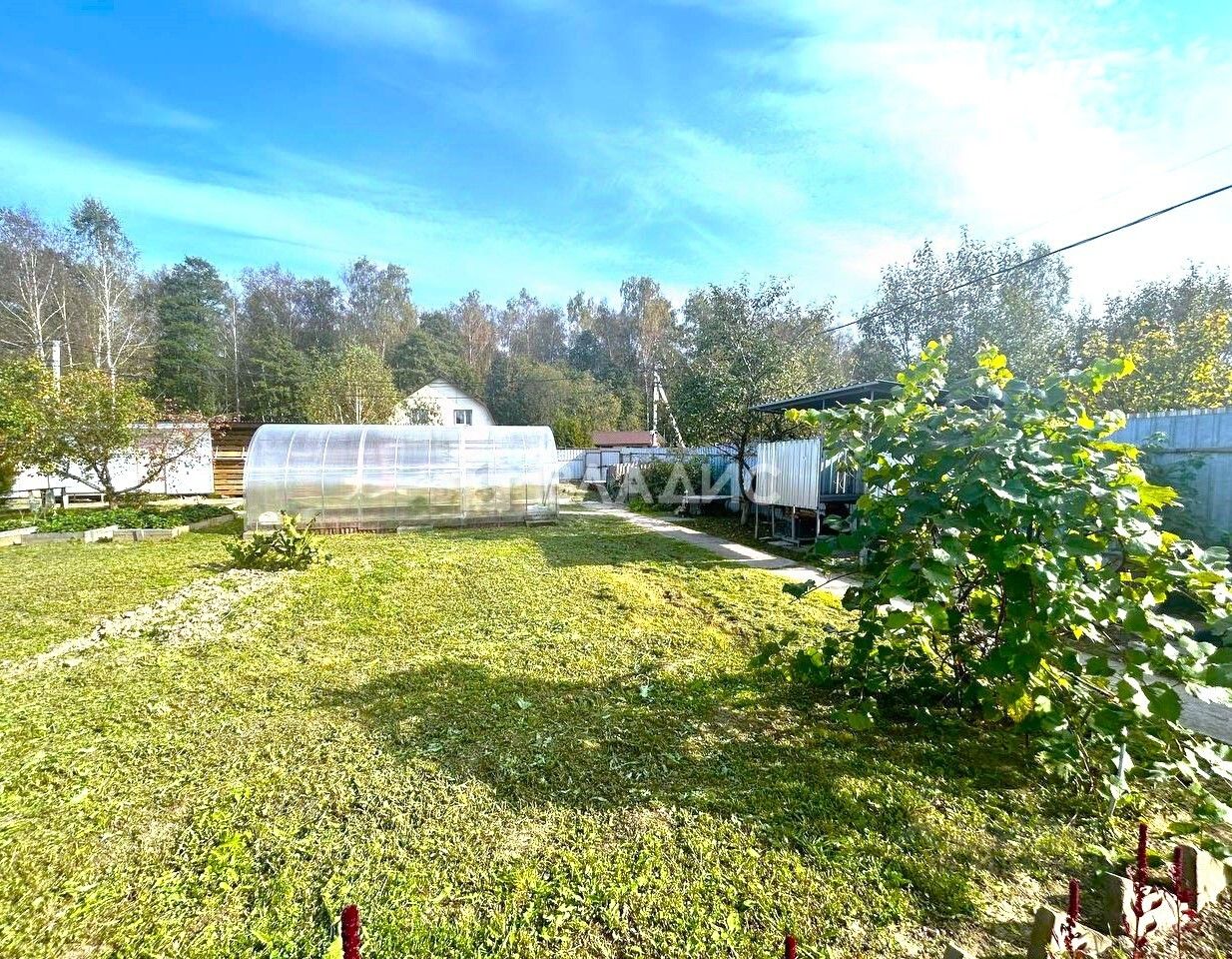 Участок ровный, сухой, огорожен и облагорожен, парник, хозяйственное строение, много плодовых и ягодных деревьев.