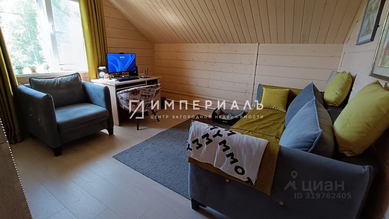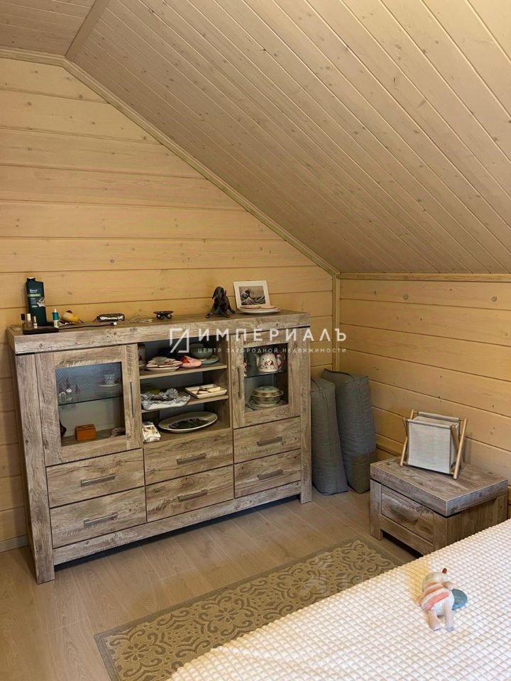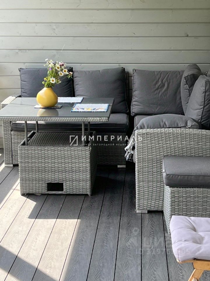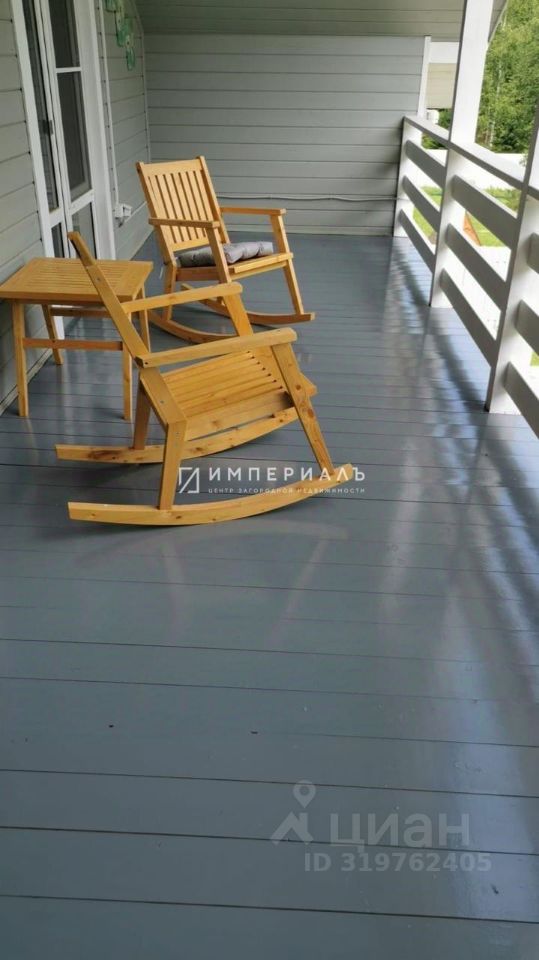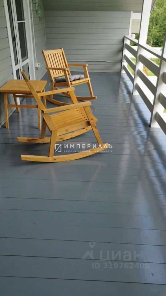 Планировка: 1 этаж - прихожая, холл, бойлерная, совместный сан.узел, уютная кухня-гостиная с выходом на террасу, 1 спальня. Кухня полностью оборудована бытовой техникой Bosch. На первом этаже теплый пол покрыт керамогранитом. Установлена межэтажная основательная лестница. 2 этаж - 3 спальни. Две спальни с выходом на террасу, просторный совместный сан.узел. Уютные спальни выполнены в разных цветовых гаммах и наполнены элементами декора. Напольное покрытие - ламинат. Террасы: нижняя терраса с мягким угловым диваном, пуфом и столиком, терраса второго этажа с двумя кресло-качалками и столиком.