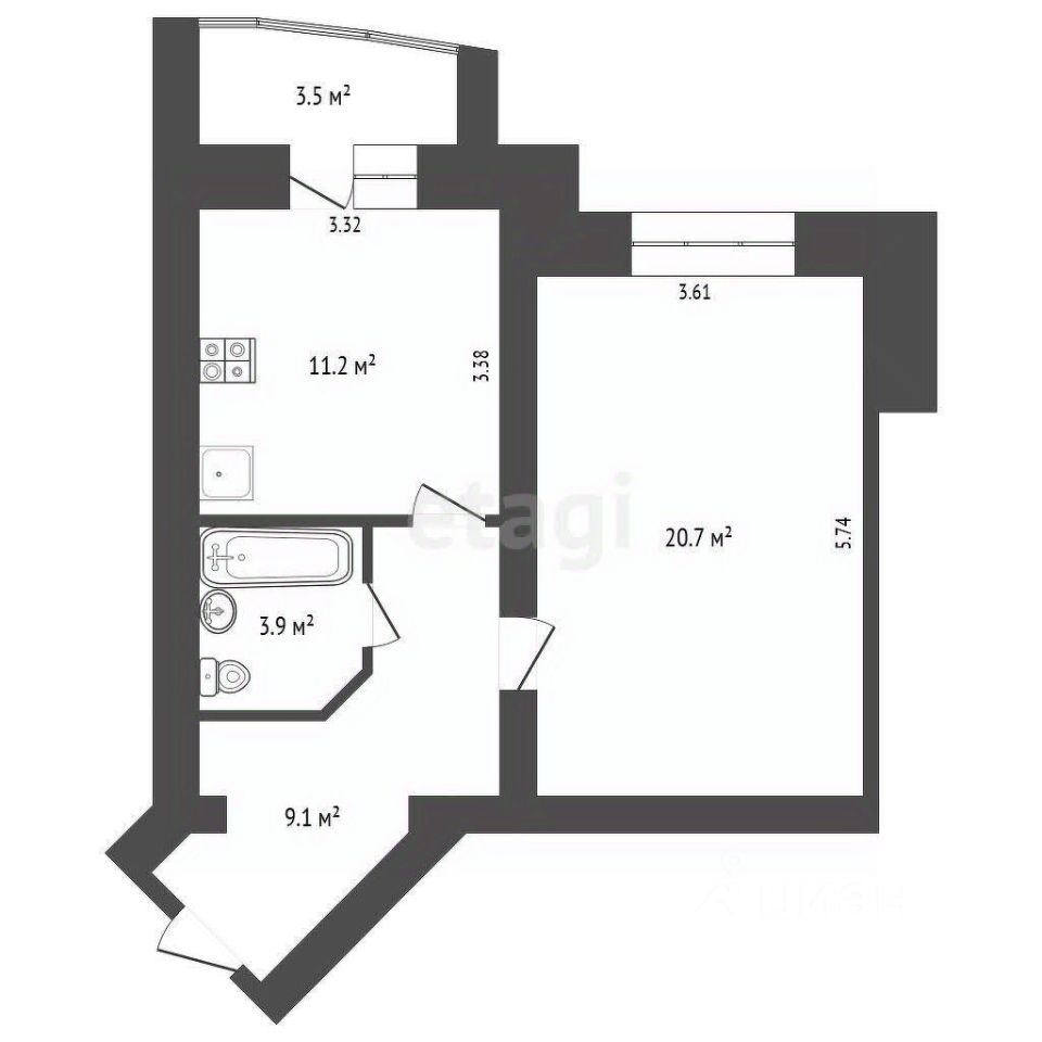 Уважаемые покупатели! Предлагаю вашему вниманию просторную видовую однокомнатную квартиру на 2 этаже кирпичного дома 2012 года постройки. Общая площадь квартиры составляет 44,9 кв.м., включая 3,5 кв.м. лоджии. Жилая площадь — 20,7 кв.м., кухня — 11,2 кв.м.