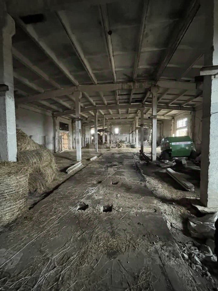 3 Ангара: один для мелкого рогатого скота (овцы, помещается 4500 голов), второй для крупного рогатого скота ( помещается 400 голов). Полностью оборудованы под ведение деятельности. Высота потолков 10 метров. В третьем, хранится сено и техника.