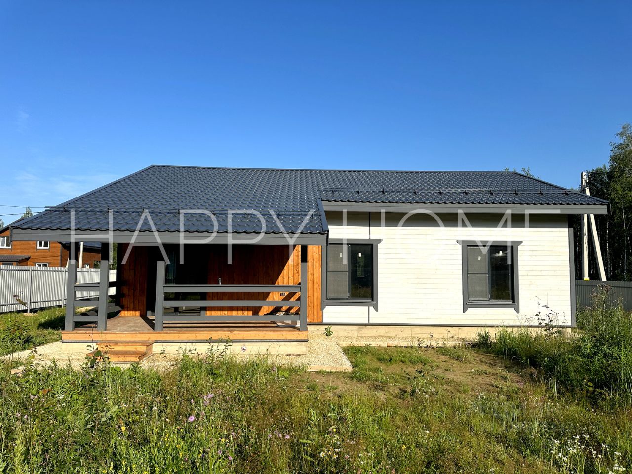 ПРОДАЕТСЯ ЖИЛОЙ ДОМ ОТ ЗАСТРОЙЩИКА С ОТДЕЛКОЙ ''ПОД КЛЮЧ''. ДОМ: одноэтажный, с уютной террасой, площадью 130 кв.м. Материал постройки: газоблок. Фундамент - монолитная плита. Внутренняя отделка - обработанная и покрашенная имитация бруса. Внешняя отделка - имитация бруса. Кровля - металлочерепица. Крыша и фасад - вентилируемые. Планировка функциональная и продуманная: - крыльцо, прихожая, котельная, кухня- гостиная с выходом на террасу, санузел, 3 спальни. КОММУНИКАЦИИ: Отопление от электрического котла + теплый водяной пол по всему первому этажу, Котельная оборудована, Радиаторы, Электричество 15 кВт 380 В, подключено и разведено по точкам потребления. Водоснабжение - скважина. Канализация - септик. Интернет - оптоволокно.