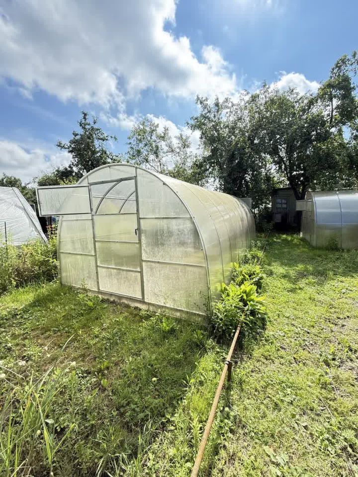 Участок: ровной прямоугольной формы, с плодовыми деревьями и кустарниками (слива, яблони, крыжовник, смородина, жимолость и другие). На участке имеется две теплицы, туалет, хозблок. Есть межевание.