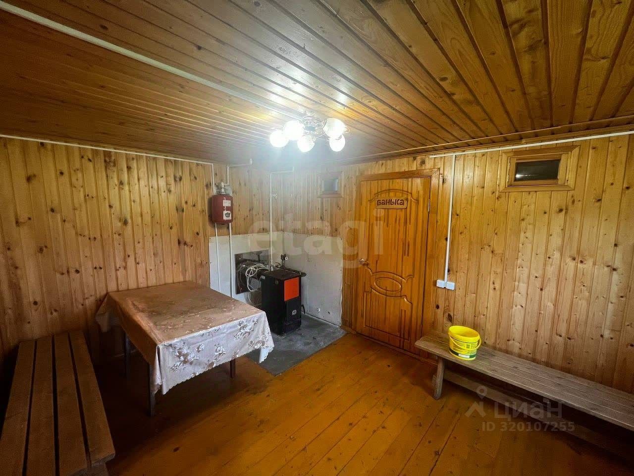 Одноэтажный жилой дом площадью 85,5 м² построен из бруса, все коммуникации подведены (центральное водоснабжение, газ, электричество, отопление), но требуется косметический ремонт. Двухэтажная баня из пеноблоков обшита сайдингом снаружи и деревом внутри, что создает приятную атмосферу. На первом этаже расположены комната отдыха, парная и санузел с душевой кабиной. На второй этаж ведет деревянная лестница из массива, где находится просторная жилая комната с видом на храм.