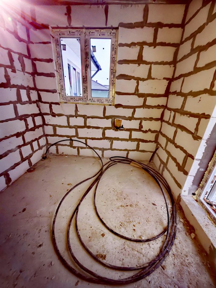 - Дом площадью 119 кв.м., БЧО. Три спальни, два санузла. Очень просторная объеденная кухня-гостиная, которую можно разделить или выделить четвертую спальню. Дом построен, сети заведены в дом, подключены к уличным сетям, все документы оформлены.