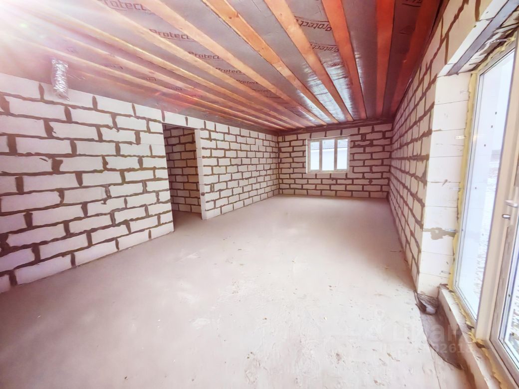 - Крыша металлочерепица, все деревянные элементы кровли обработаны антисептиком, водосточная система смонтирована. Входная дверь металлическая, окна пластиковые, двухкамерные стеклопакеты, открываются в двух плоскостях. Высота потолков до отделки 3 метра.