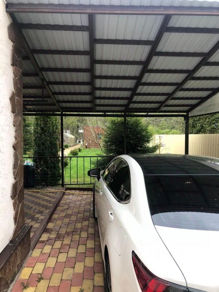 На участке есть беседка, зона барбекю, навес для автомобиля, баня, теплица.