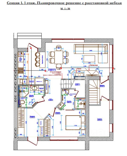 Общая площадь секции составляет 269,5 кв.м, включая два этажа и цокольный этаж. Жилая площадь — 71,72 кв.м, кухня занимает 30,69 кв.м, что позволяет комфортно разместить обеденную зону и современную мебель. На всех уровнях выполнена предчистовая отделка: стяжка пола, оштукатуренные стены, разведенные коммуникации (электричество, водопровод, газовое отопление). Панорамные окна обеспечивают естественное освещение и открывают вид на слияние рек Оки и Угры.
