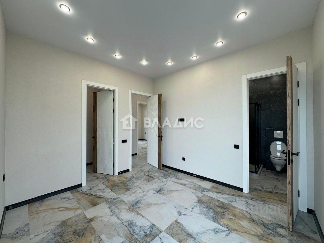 Внутренняя отделка: стены - оштукатурены, полы - керамогранит, потолки натяжные. Везде установлены радиаторы отопления.