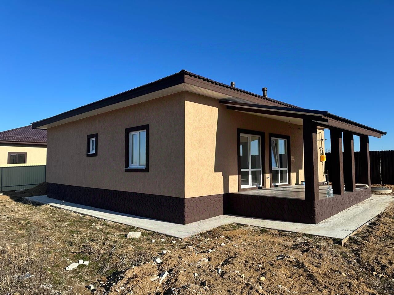 Описание дома: Дом площадью 140 м. Стeны- гaзоcиликaтный блок + утeпление . Дом снаружи- фасад штукатурка короед. Кровля- метало черепица + утепление. Окна-ПВХ (ламинированные двойные стеклопакеты). Входная дверь: металлическая, два санузла. Внутренняя отделка ''под ключ'': полы - керамическая плитка (ламинат), стены - покрашенные обои, потолок - натяжной. Установлены качественные межкомнатные двери. Отличный вариант сразу заехать и жить, без дополнительных затрат. Дом имеет комфортную планировку: прихожая, котельная, холл, 3 спальни, 2 санузла, кухня-гостиная с выходом на замечательную террасу. Сделаны все удобства для постоянного места жительства: 5 мин. На машине есть : продуктовые супермаркеты, кафе, детский сад, поликлиника, МФЦ, фитнесс центр, остановки общественного транспорта. Без долгов и обременений. Свободная продажа. Возможно приобрести жилье по ипотеке с использованием материнского сертификата, военного сертификата. Мы являемся официальными партнерами ПАО Сбербанк, Дельта банк, Россельхоз банк заявку на ипотеку можно подать у нас в офисе. Также строим под индивидуальные проекты.