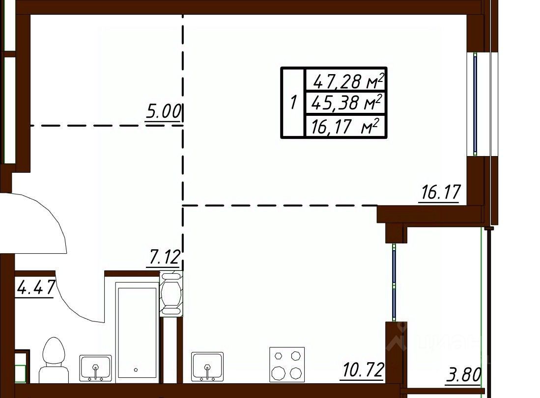 Общая площадь47,28 м2
