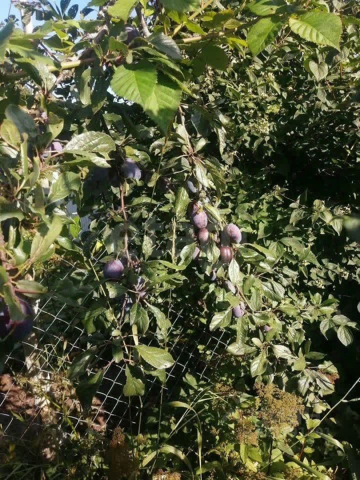 Участок отличает ухоженное состояние и высокая функциональность. Водоснабжение организовано из колодца на пять колец с погружным насосом, канализация — выгребная яма, санузел расположен на улице в обшитом вагонкой хозяйственном блоке. Территория полностью огорожена забором с воротами и калиткой. Инфраструктура участка включает усиленную теплицу 3х6 метров, беседку и зону для мангала. Земля плодородная, привозная, что подтверждается богатым садом с яблонями, грушами нескольких сортов, вишней, черешней, сливой и алычой, а также ягодными кустами смородины, малины, клубники, жимолости и ежевики. Ландшафтный дизайн дополнен декоративными кустами, розами, пионами, туями и виноградом.
