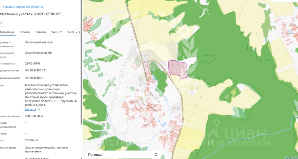 Технические детали: * Кадастровый номер: 40:20:121801:71 * Категория: Земли сельскохозяйственного назначения. * Разрешенное использование: Любое из зоны СХ-2 (КФХ, производство с/х продукции, переработка, дачное строительство* и многое другое). *Уточняйте возможность в органах местного самоуправления.