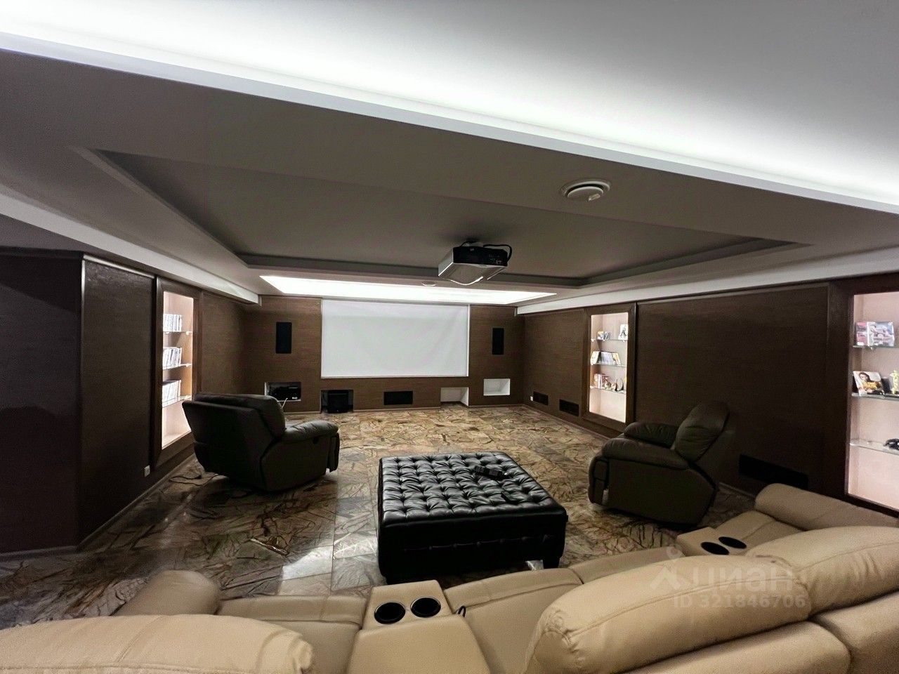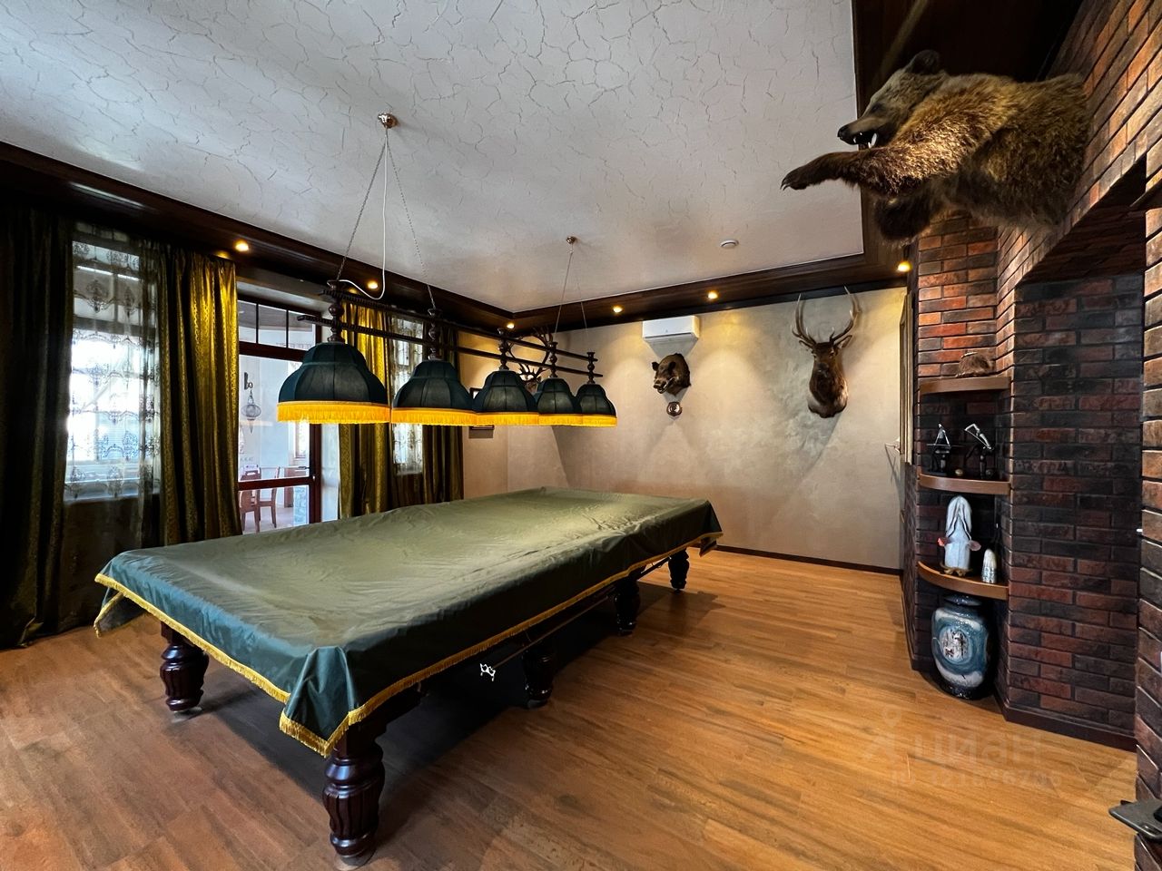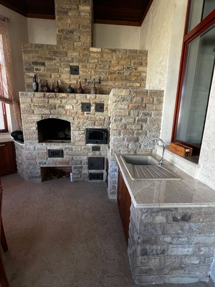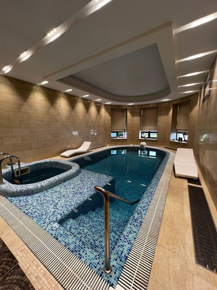 Двухэтажный жилой дом, общей площадью 602 кв.м в котором: 5 спален с сан/узлами, большая кухня с гостиной и столовой зоной, библиотека, профессиональный кинозал. В подвальной части располагается морозильная большая камера, множества гардеробных , прачечная и спортзал. На территория участка есть гараж и пункт охраны с видеонаблюдением. На участке есть второе здание с баней 190 кв м + подвал 100 кв м, с собственным бассейном, бильярдным залом, каминной зоной и кухней, салоном красоты. Высокое качество отделки дома как снаружи, так и внутри, продуманная планировка, красивый зеленый участок, с архитектурной подсветкой.