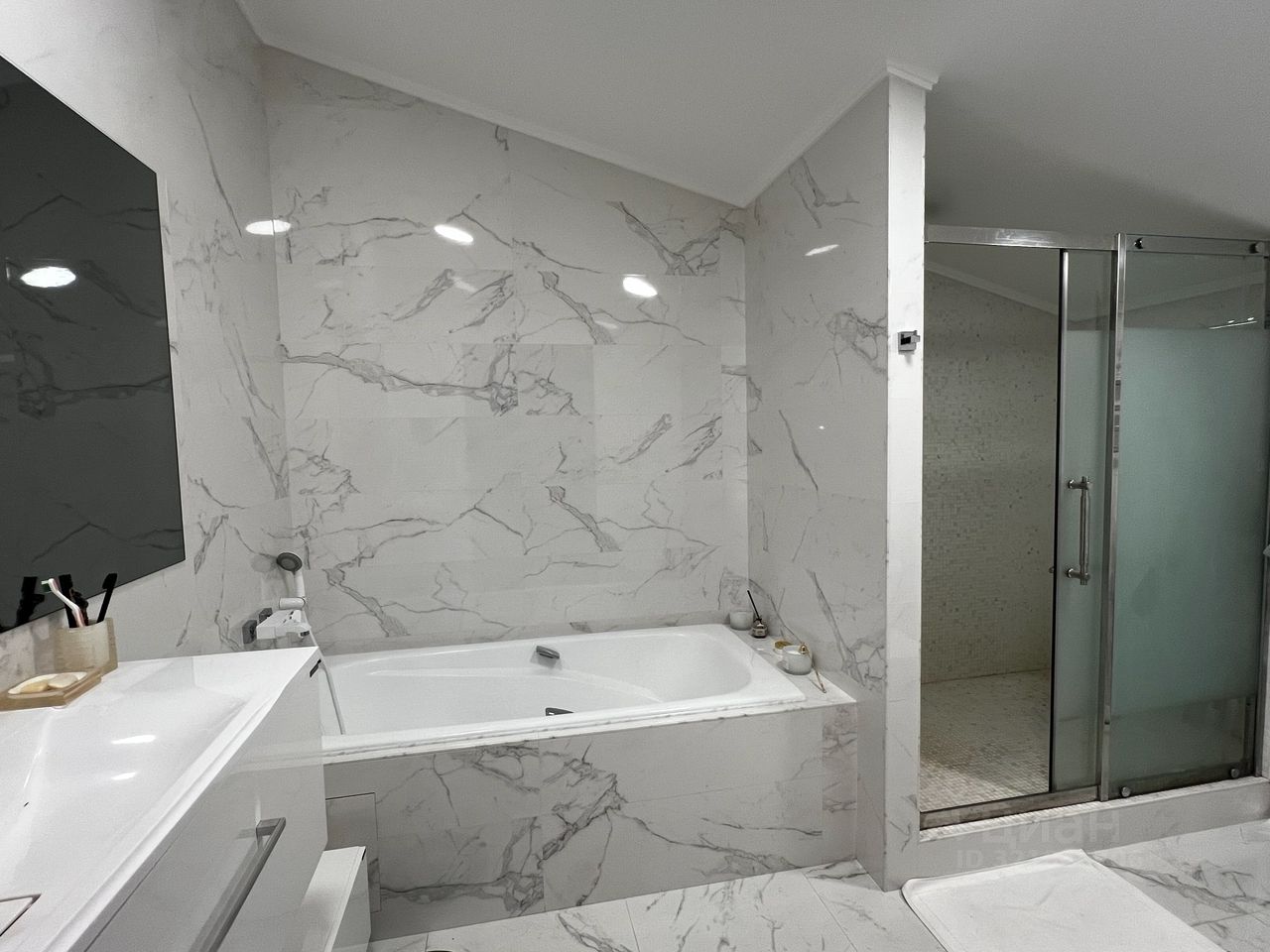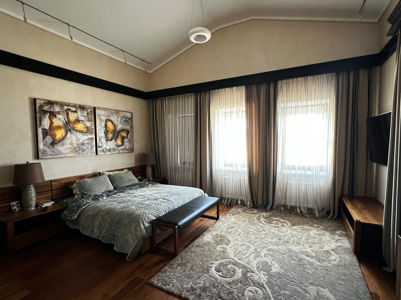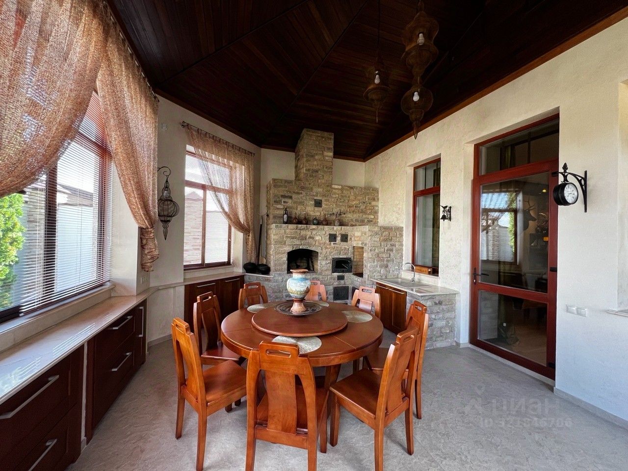 Двухэтажный жилой дом, общей площадью 602 кв.м в котором: 5 спален с сан/узлами, большая кухня с гостиной и столовой зоной, библиотека, профессиональный кинозал. В подвальной части располагается морозильная большая камера, множества гардеробных , прачечная и спортзал. На территория участка есть гараж и пункт охраны с видеонаблюдением. На участке есть второе здание с баней 190 кв м + подвал 100 кв м, с собственным бассейном, бильярдным залом, каминной зоной и кухней, салоном красоты. Высокое качество отделки дома как снаружи, так и внутри, продуманная планировка, красивый зеленый участок, с архитектурной подсветкой.