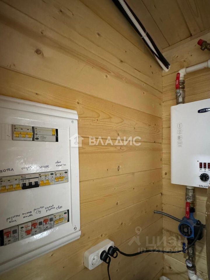 Коммуникации: Электричество 15 кВт, три фазы, заведено и разведено по точкам потребления, установлены розетки и выключатели. Канализация - центральная. Водоснабжение - центральное. Отопление электрический котел. ГАЗ по границе участка.