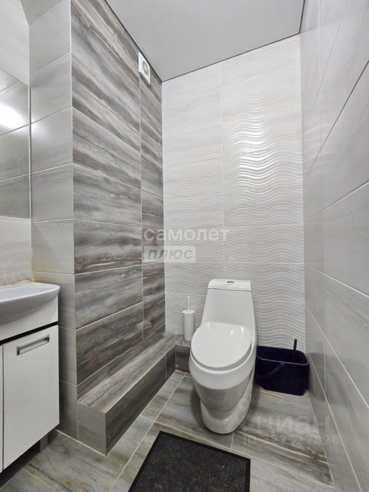 Спальня составляет 9 м2, остальная площадь помещения 59 м2. Просторная гардеробная в 7,5 м2. Туалет 3 м2, совмещенная ванная и еще 2 туалет составляют площадь 5,4 м2.