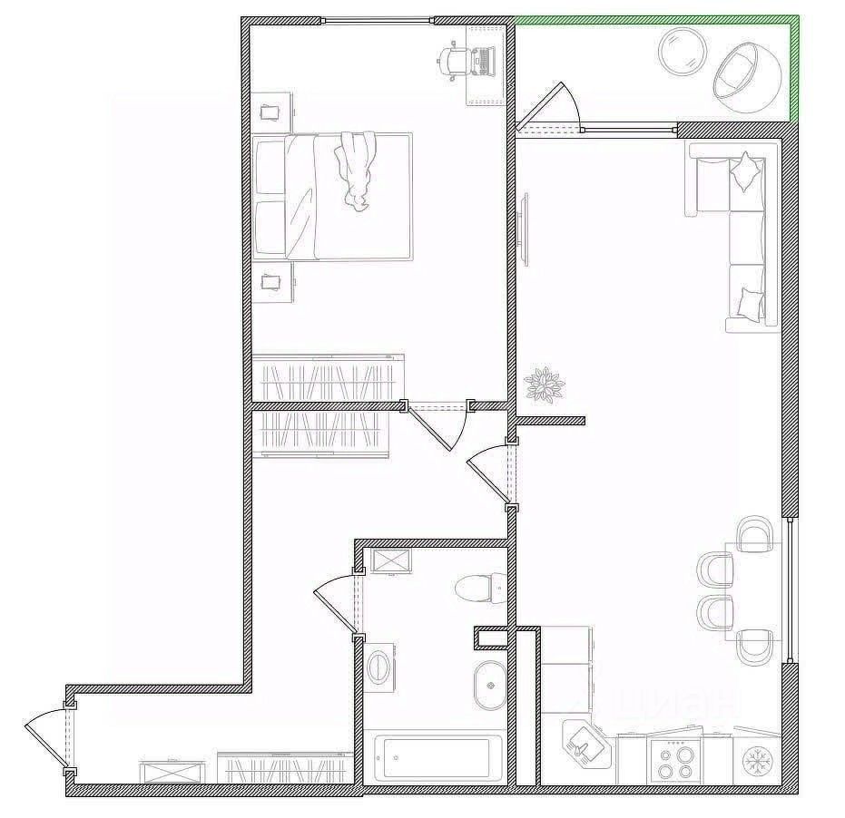Продаётся шикарная еврооднушка 56,5 кв.м. в ЖК ''Комфорт парк''. Кухня-гостиная 26,2 кв.м зонирована, при необходимости легко можно отделить вторую комнату. Лоджия 4 кв.м. Спальня - 15 кв.м.