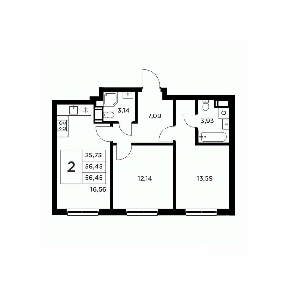 Общая площадь56,45 м2