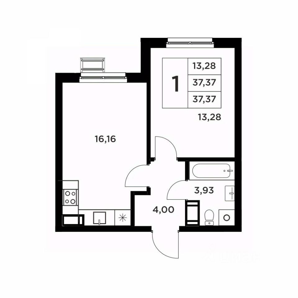 Общая площадь37,37 м2