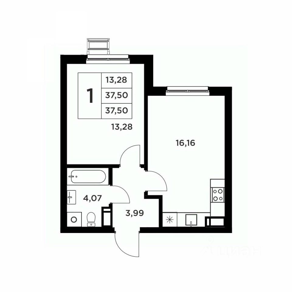Общая площадь37,5 м2